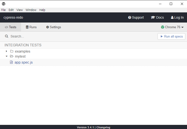 프로젝트 폴더 아래 cypress 폴더가 생성된 것을 볼 수 있습니다.