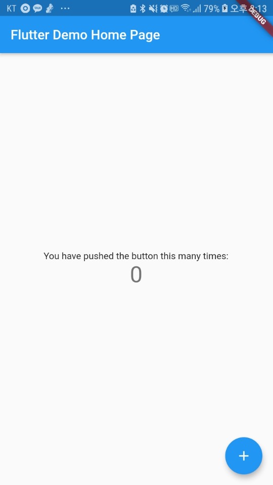 +) 디버깅 중 main.dart에서 primarySwatch의 색상값을 변경하면 바로 화면에 반영이 되는 것을 볼 수 있습니다. (hot hot reloading)