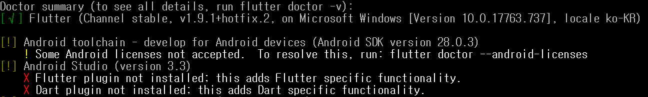 (4) Flutter: Run Flutter Doctor를 선택하여 동작을 하는지 확인합니다.